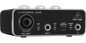 Como forma de decirte gracias, cuando registres tu UM2 en la página de behringer.com, te recompensaremos con un código para descarga gratuita de la versión completa de Traktion. Para más información, visita: tracktion.com/support/videos. Cuando es momento de grabar, necesitarás la mejor interfaz de audio que puedas obtener y con la que puedas contar. Es por eso que te presentamos la increíble UM2, una ultra compacta interfaz de 2×2, 48 kHz con preamps Xenyx de alta calidad, entrada combinada XLR/TRS para entrada de micrófono o instrumento (no requiere DI) y una entrada 1/4″ adicional para instrumento. El rico conjunto de funciones de esta interfaz tiene también una potente salida de audífonos para el monitoreo de tu sesión además de 2 salidas y alimentación por medio de USB, lo que la hace la interfaz de grabación más portátil de su clase.